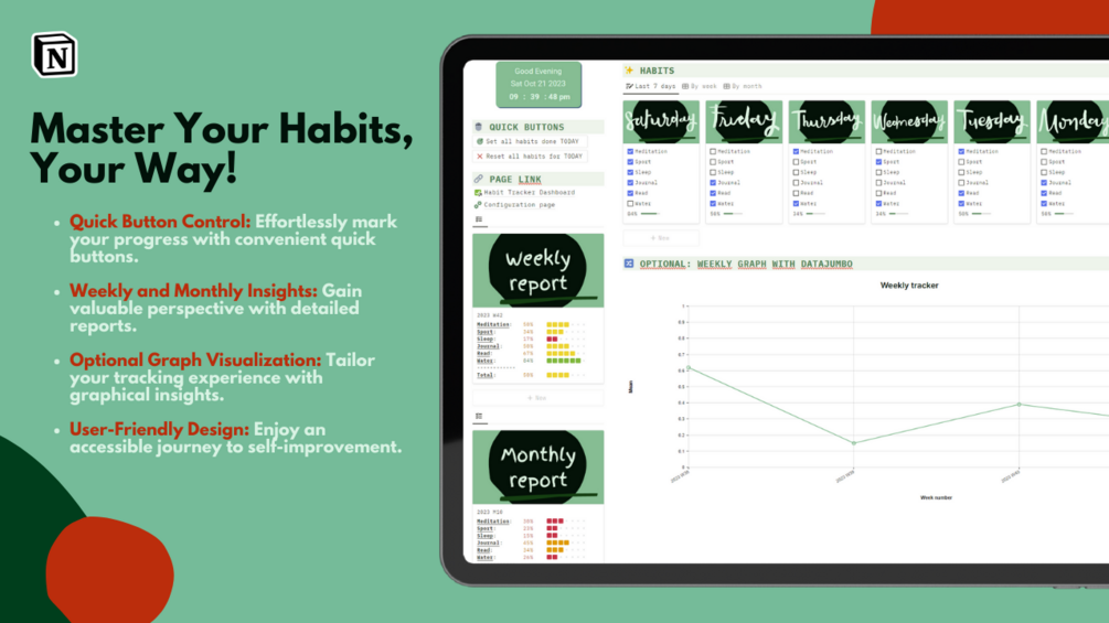 ๐ Weekly and Monthly Tracking: Take charge of your habits with both weekly and monthly tracking options. Whether you're aiming to create daily routines or meet monthly milestones, this template has you covered.